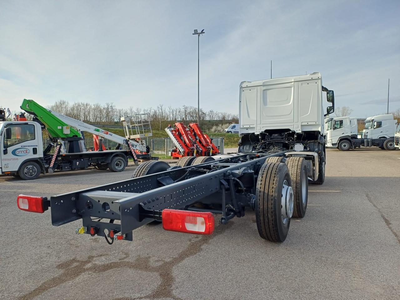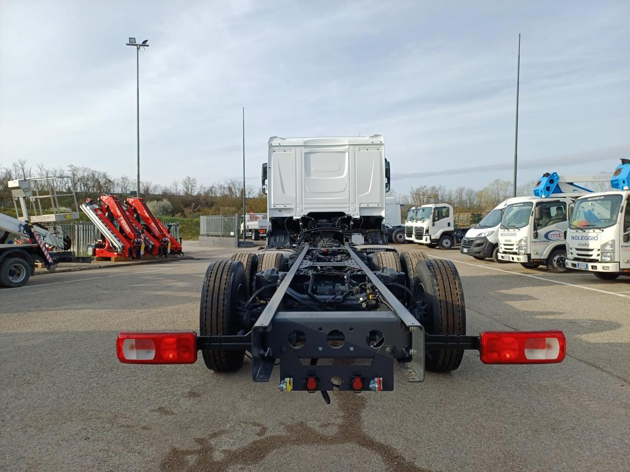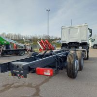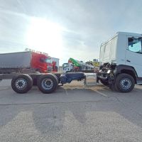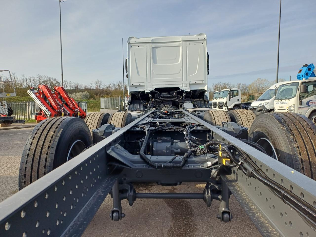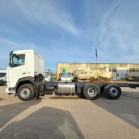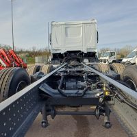 Veicolo NUOVO in pronta consegna, E6, cilindrata 13000 cc, cv 483, kw 355, 6 cilindri multicoppia, cambio automatico TraXon 12 marce, passo 4.20 mt, sbalzo posteriore 2.40 mt, assale anteriore 9.00 t a paraboliche, assale posteriore 20 t con sospensioni pneumatiche, serbatoio carburante da 430 litri, massa totale a terra relativa a peso telaio 28000 kg, massa massima relativa a barra di traino/giunto 53000 kg, aletta parasole esterna, fari ledi, aria condizionata, 2 posti in cabina, volante multifunzione, fendinebbia anteriori e posteriori, predisposizione presa di forza, sedile del conducente con sospensione pneumatica, sedile del conducente con braccioli regolabili su entrambi i lati, cruise control adattivo, norme di sicurezza ADR per classi AT+ FL+ EXII/III che include interruttore di isolamento della batteria sul telaio che può essere controllato in cabina, freno motore MX, scudo contro il sollevamento della polvere, terzo asse sollevabile e sterzante.