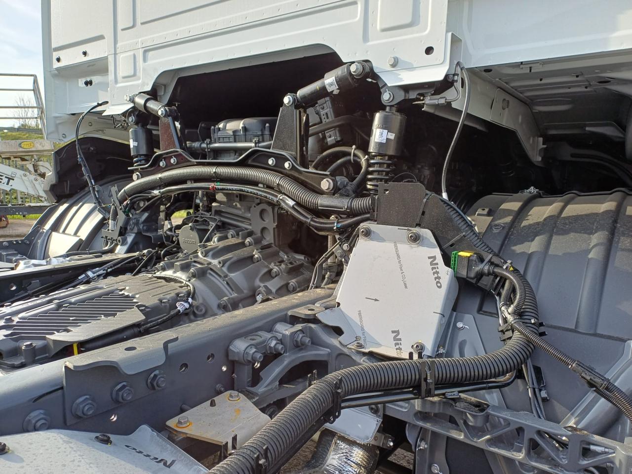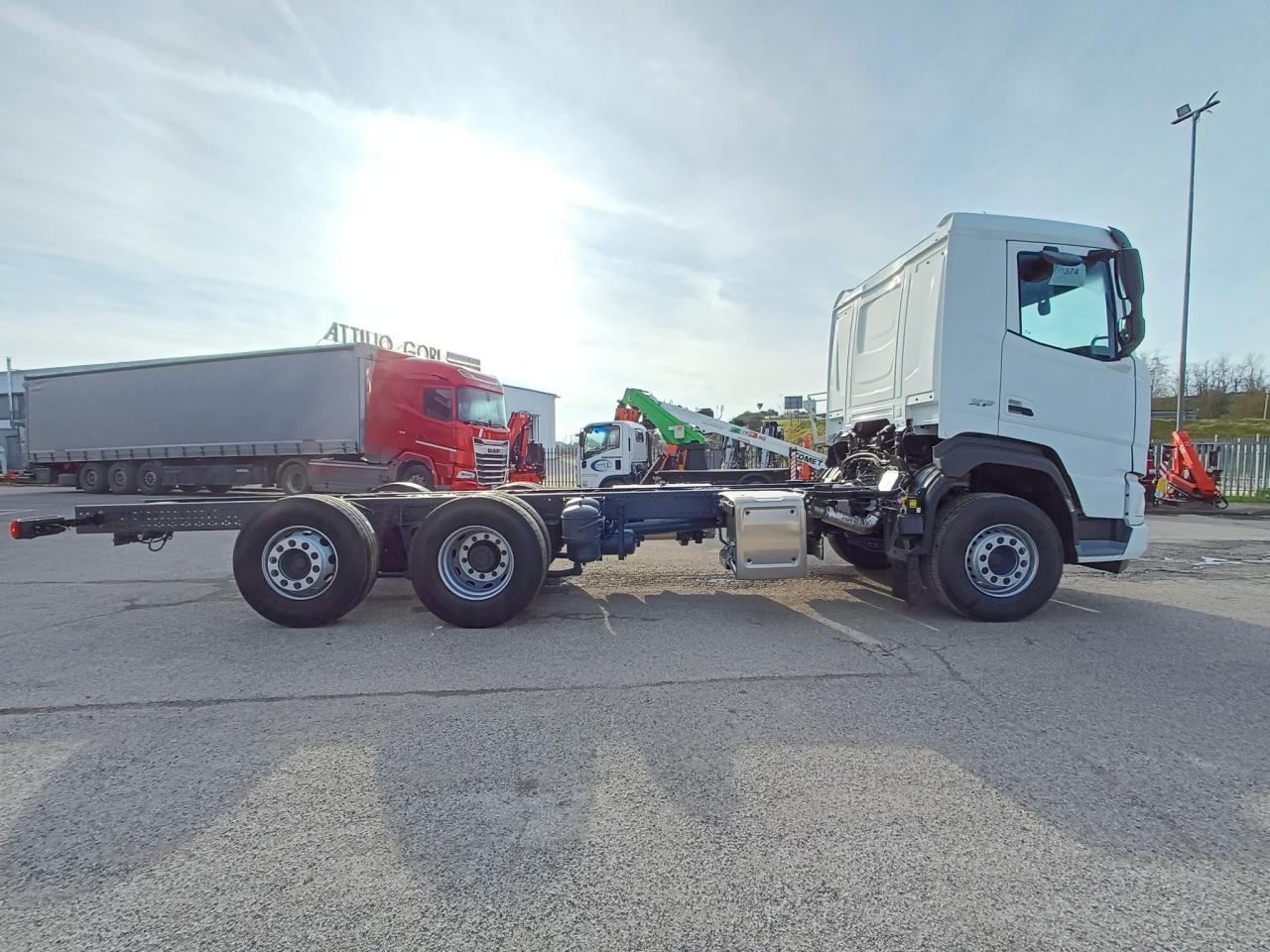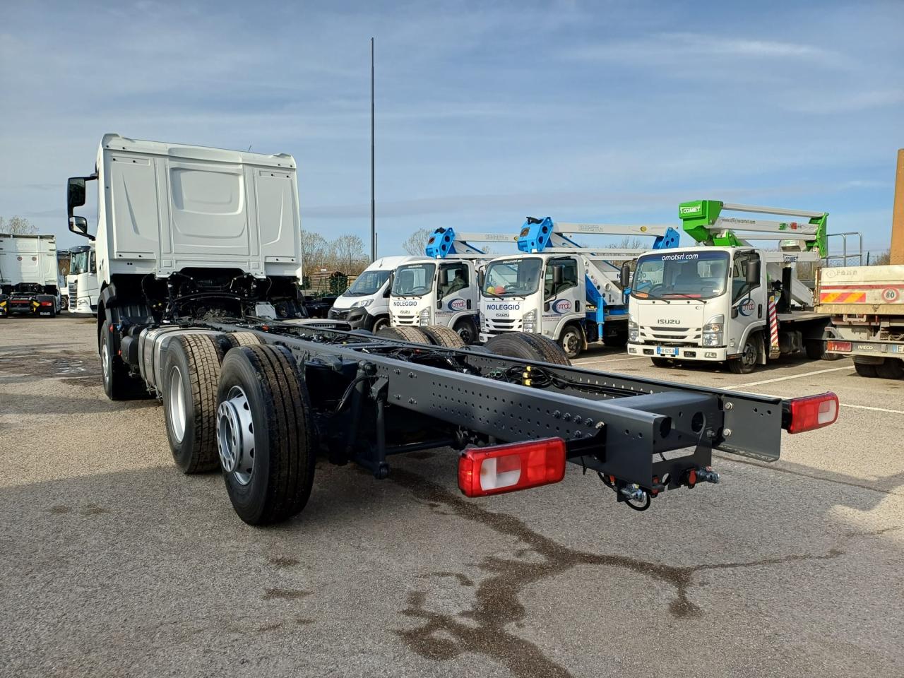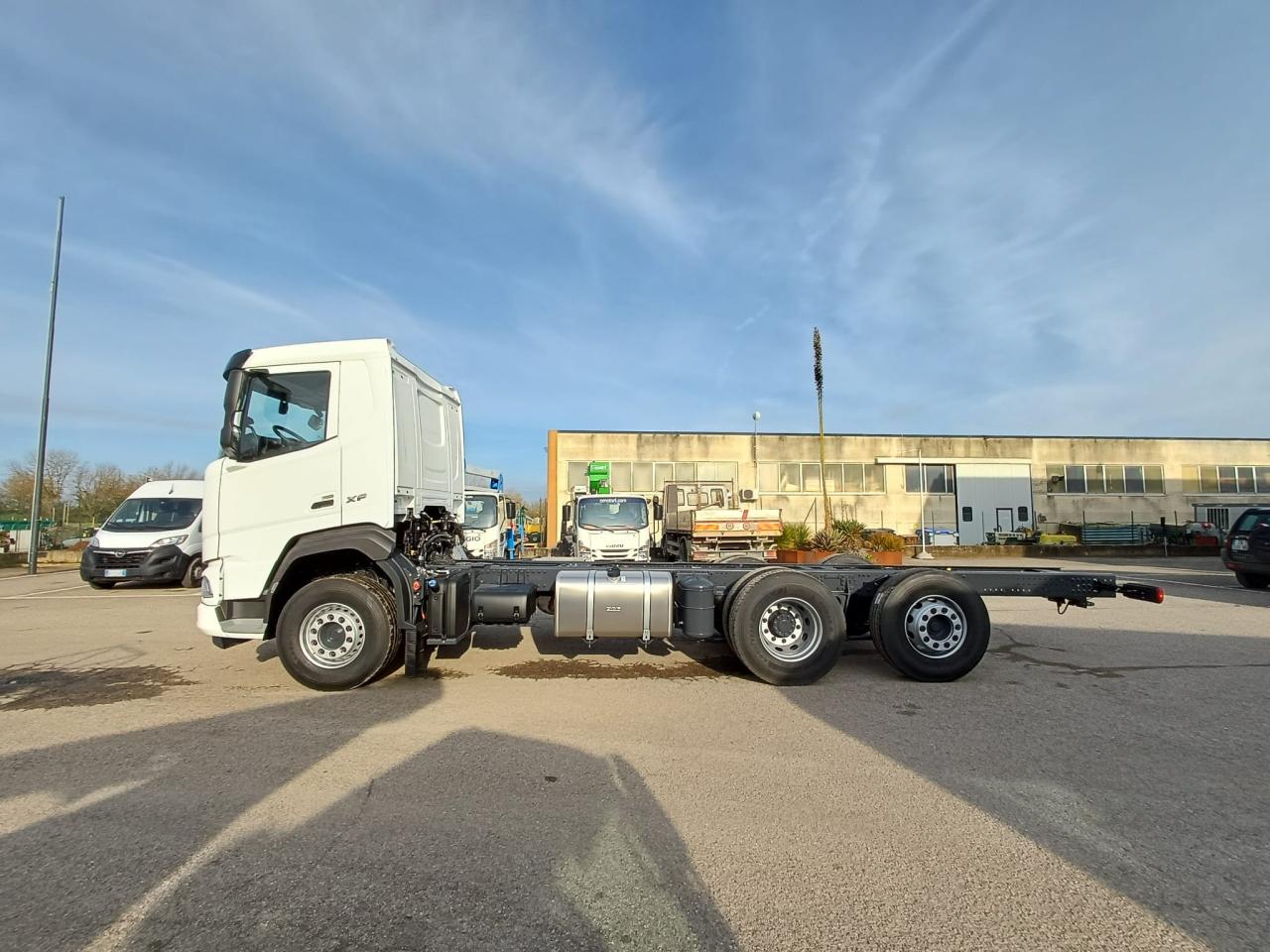 Veicolo NUOVO in pronta consegna, E6, cilindrata 13000 cc, cv 483, kw 355, 6 cilindri multicoppia, cambio automatico TraXon 12 marce, passo 4.20 mt, sbalzo posteriore 2.40 mt, assale anteriore 9.00 t a paraboliche, assale posteriore 20 t con sospensioni pneumatiche, serbatoio carburante da 430 litri, massa totale a terra relativa a peso telaio 28000 kg, massa massima relativa a barra di traino/giunto 53000 kg, aletta parasole esterna, fari ledi, aria condizionata, 2 posti in cabina, volante multifunzione, fendinebbia anteriori e posteriori, predisposizione presa di forza, sedile del conducente con sospensione pneumatica, sedile del conducente con braccioli regolabili su entrambi i lati, cruise control adattivo, norme di sicurezza ADR per classi AT+ FL+ EXII/III che include interruttore di isolamento della batteria sul telaio che può essere controllato in cabina, freno motore MX, scudo contro il sollevamento della polvere, terzo asse sollevabile e sterzante.