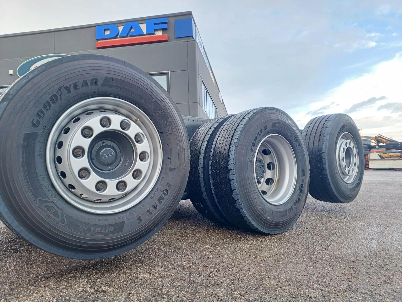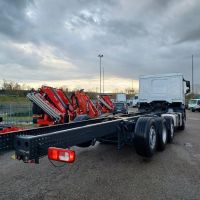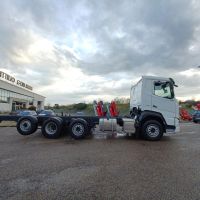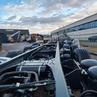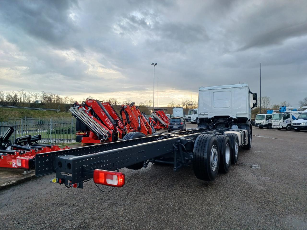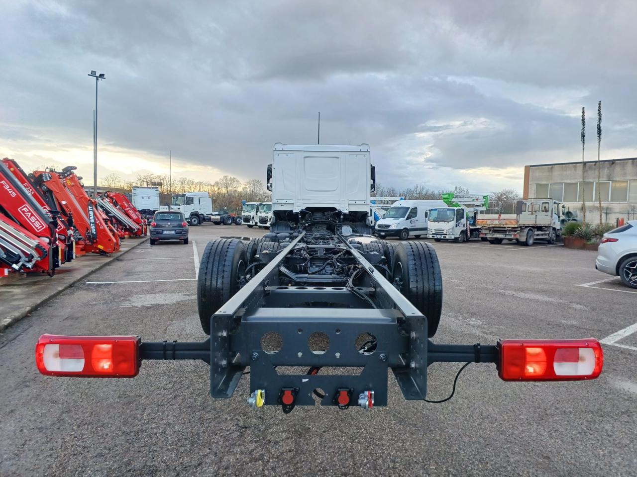 Veicolo NUOVO in pronta consegna, E6, cilindrata 13000 cc, cv 483, kw 355, 6 cilindri multicoppia, cambio automatico TraXon 12 marce, passo 5.05 mt, sbalzo posteriore 3,20 mt, assale anteriore 9.00 t a paraboliche, assale posteriore 28 t con sospensioni pneumatiche, rapporto al ponte assale posteriore 2.47, serbatoio carburante da 340 litri, massa totale a terra relativa a peso telaio 36000 kg, massa massima relativa a barra di traino/giunto 56000 kg, aletta parasole esterna, fari ledi, aria condizionata, 2 posti in cabina, volante multifunzione, fendinebbia anteriori e posteriori, predisposizione presa di forza, sedile del conducente con sospensione pneumatica, sedile del conducente con braccioli regolabili su entrambi i lati, cruise control adattivo, norme di sicurezza ADR per classi AT+ FL+ EXII/III che include interruttore di isolamento della batteria sul telaio che può essere controllato in cabina, freno motore MX, scudo contro il sollevamento della polvere.