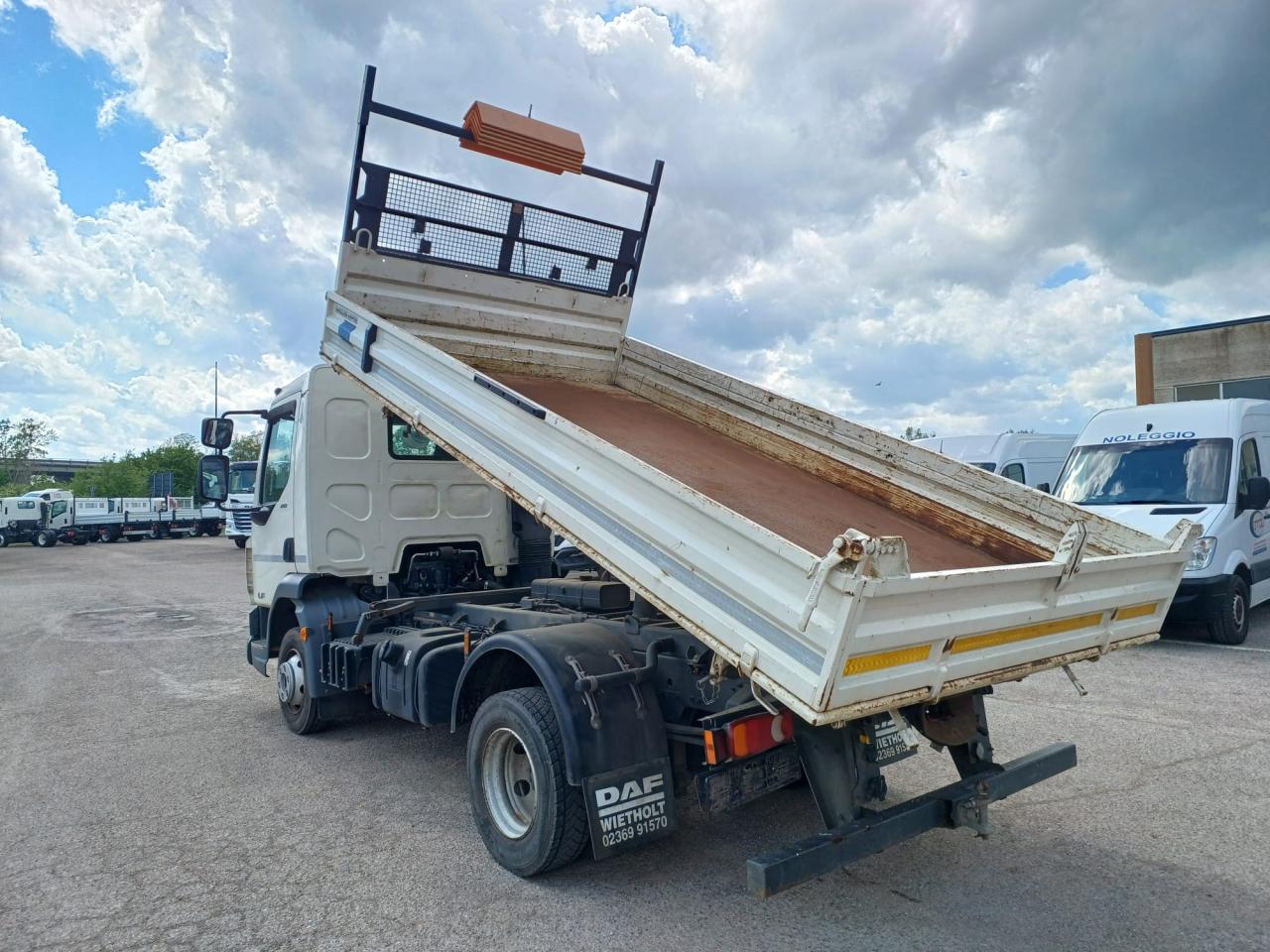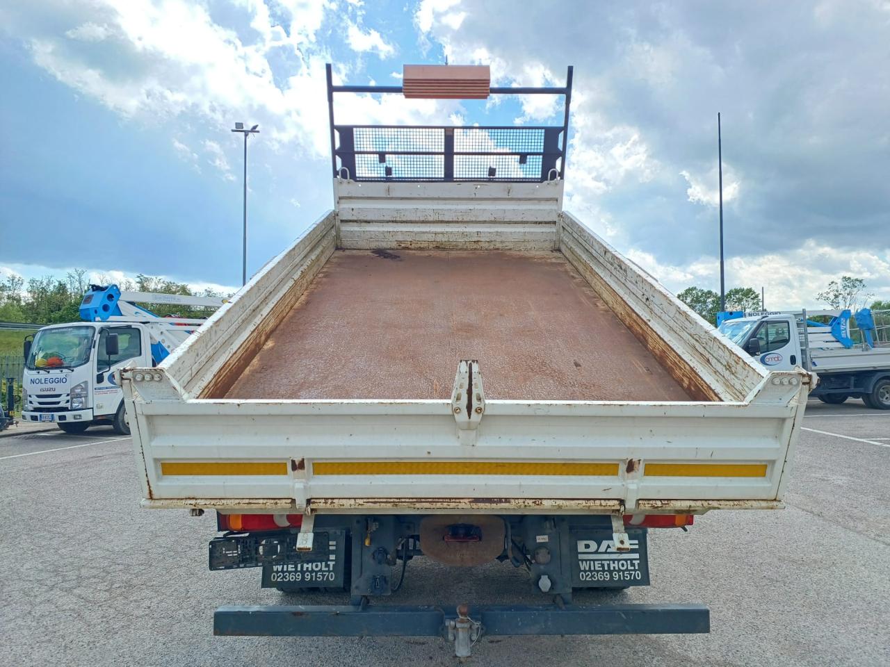ALLESTIMENTO: ribaltabile trilaterale MEILLER-KIPPER, dimensioni ribaltabile mt (lunghezza x larghezza) 4.30 X 2.40, altezza sponde 0.40 mt, paracabina con capretta terminale estraibile.