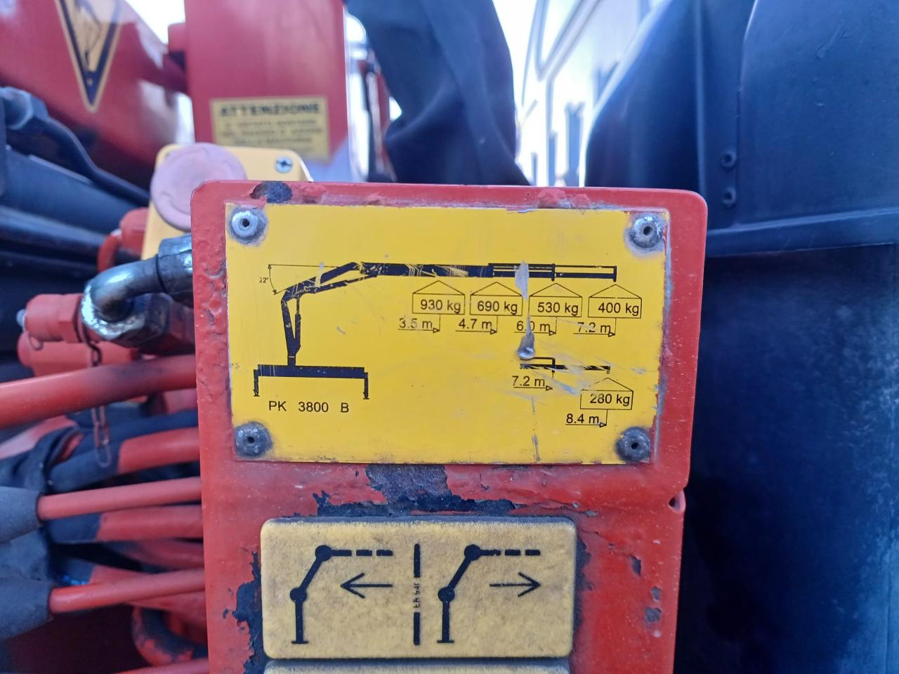 Anno 2000, km 271375 cilindrata 4751 cc, KW 107, CV 145, clima, vetri elettrici, fendinebbia anteriori e posteriori, cambio manuale marce 6 + retromarcia, 3 posti in cabina, gru PALFINGER PK 3800 B, 3 sfili idraulici, sbraccio orizzontale a mt 7.2 portata 400 kg, sbraccio orizzontale a mt 3.5 portata 930 kg, stabilizzatori ad uscita manuale, martinetti stabilizzatori regolabili manualmente, ribaltabile trilaterale con dimensioni mt (lunghezza X larghezza): 4.09X2.20, altezza sponde mt 0.60 divise, 2 cassette porta attrezzi, 2 verricelli, gommato bene.