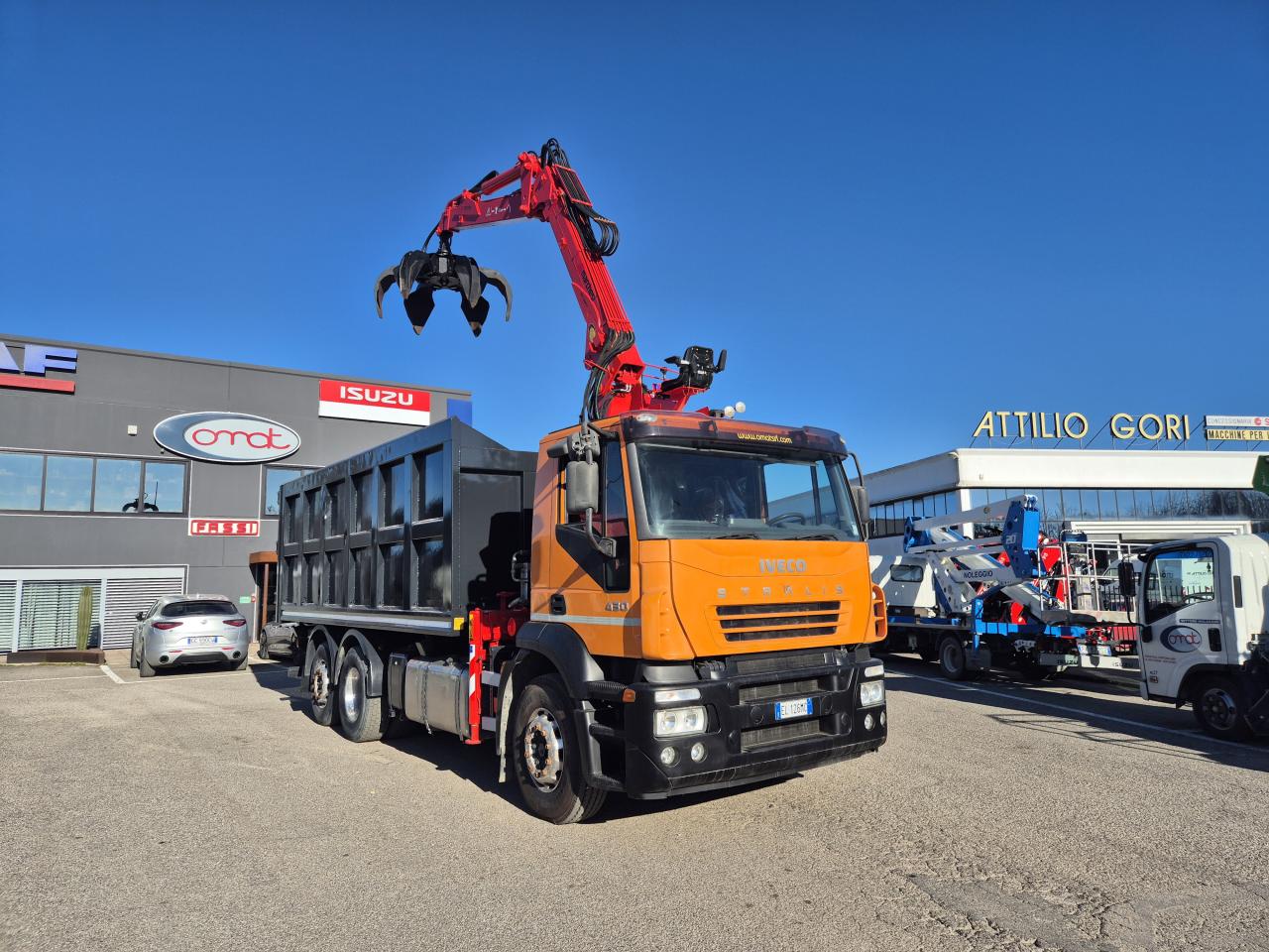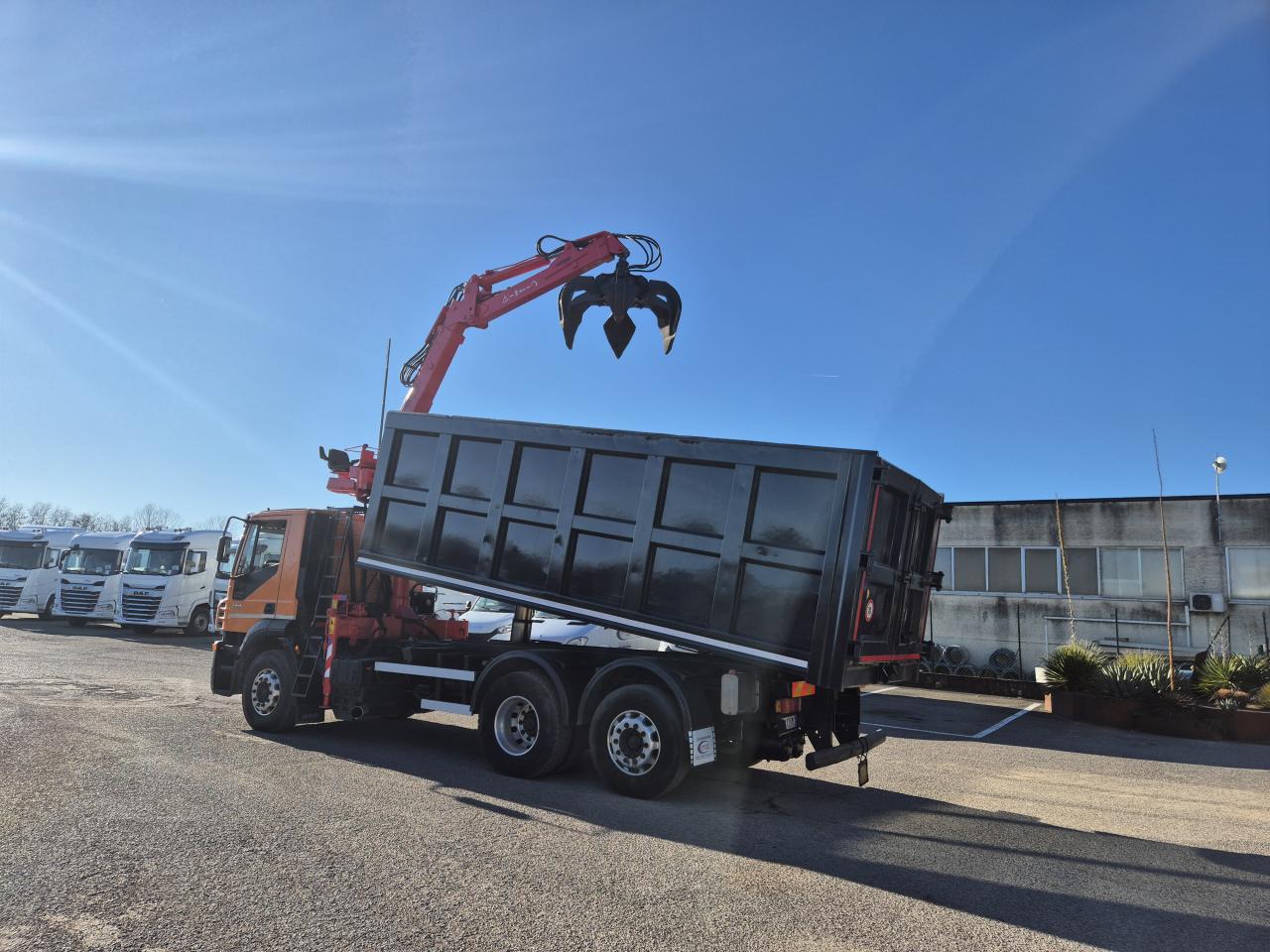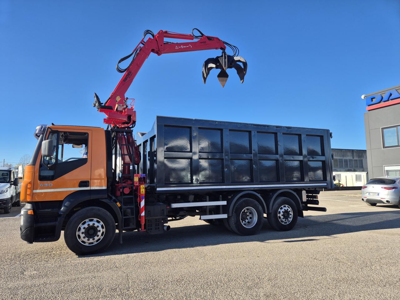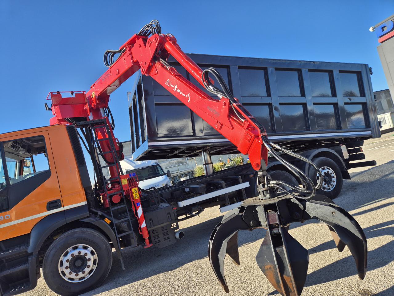 IVECO 260E43 , PORTATA AUTOCARRO 10300 KG. CAMBIO MANUALE ZF , CARICATORE MARCHESI 10000 R 11.77 COMPLETA DI POLIPO 250 LT CON ROTORE IDRAULICO , SPONDE E FONDO IN ARDOX .