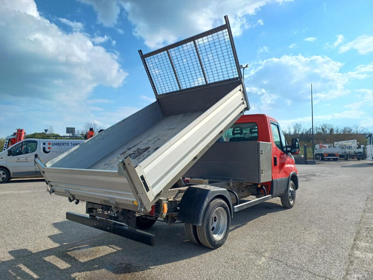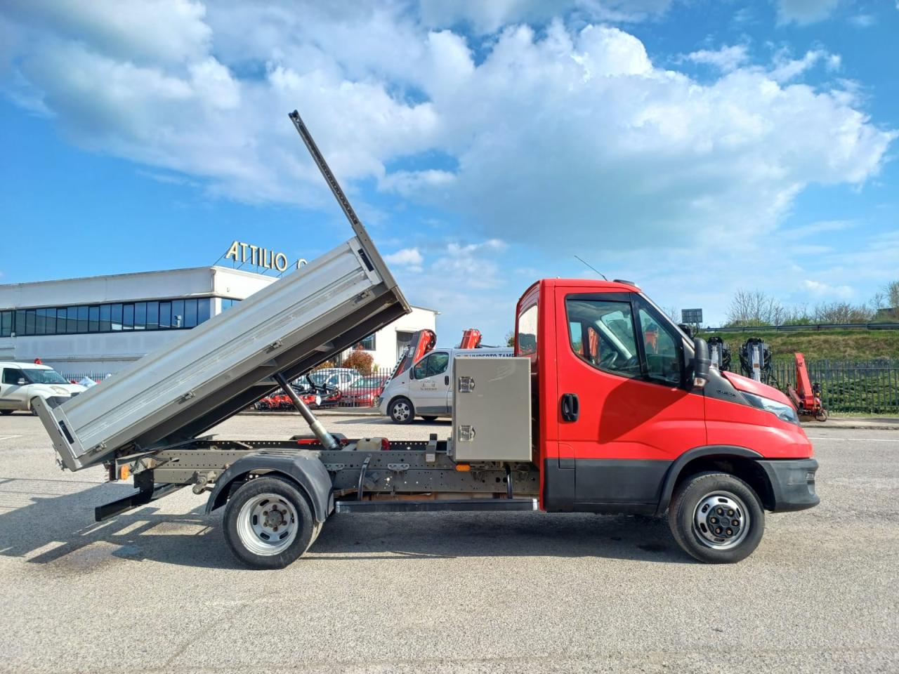 Anno 2019, km 145600, euro 6, cilindrata 2300 cc, potenza 85 kw, passo 3450 mm, peso totale a terra 3500 kg, portata 1063 kg, peso totale del convoglio 7000 kg, 3 posti in cabina, sedile del conducente top confort con bracciolo, aria condizionata, volante multifunzione, radio, bluetooth, cambio manuale marce 6+R, vetri e specchi elettrici, start/stop, vetri termici, ribaltabile posteriore, dimensioni interne ribaltabile mt (lunghezza X larghezza): 2,75 X 1,98, altezza sponde 0,40 cm, cassettone porta attrezzi tra cabina e cassone, dimensioni cassettone mt (lunghezza X larghezza X altezza): 0.60 X 1,98 X 0,80.