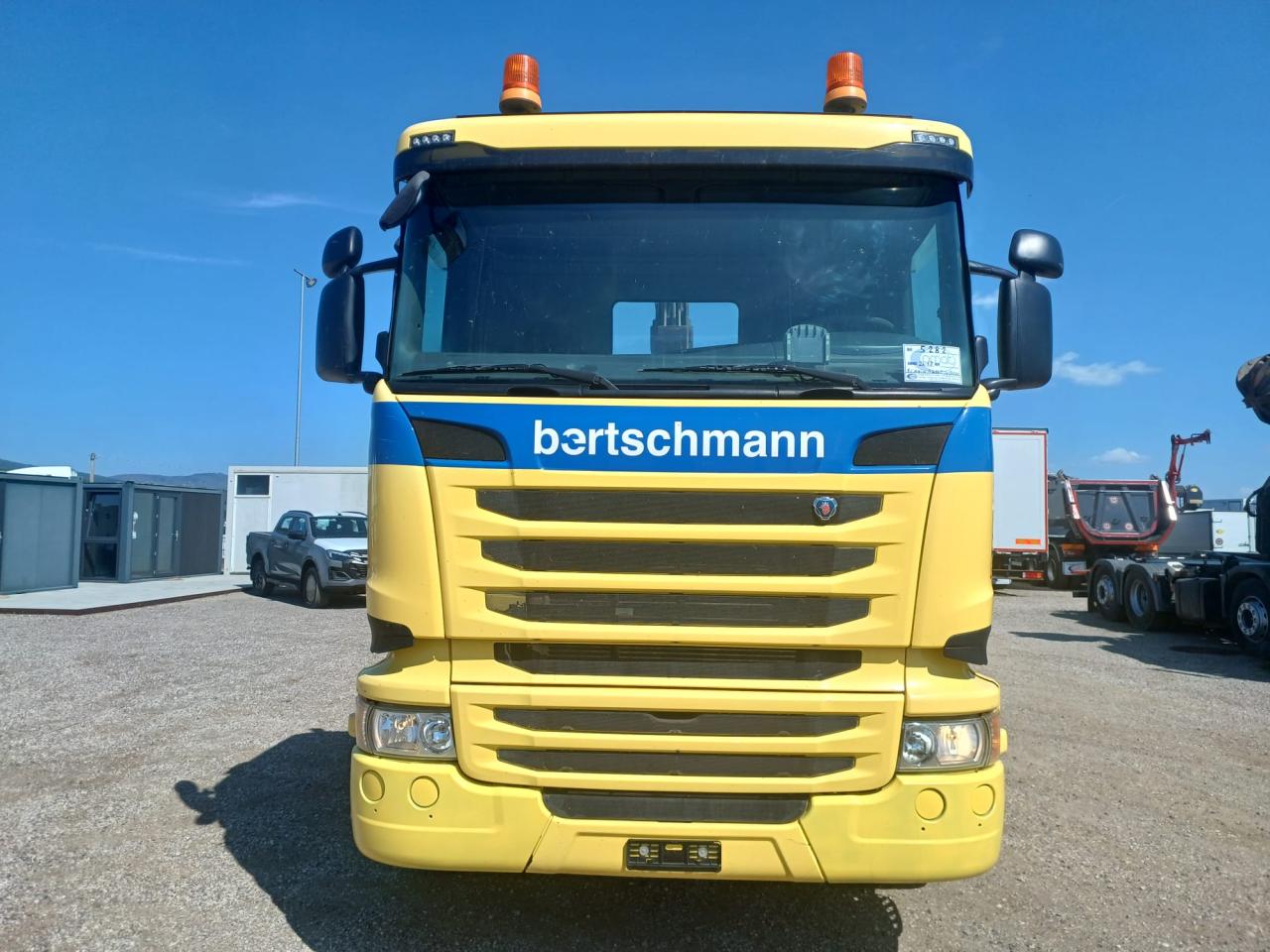 GENERALE: anno 2017, km 332500, classe emissione E6, cilindrata 12742 cc, potenza 331 kw (450 cv), peso totale a terra 32000 kg, passo 4200 mm, portata 18750, cambio automatico con frizione a 13 velocità.