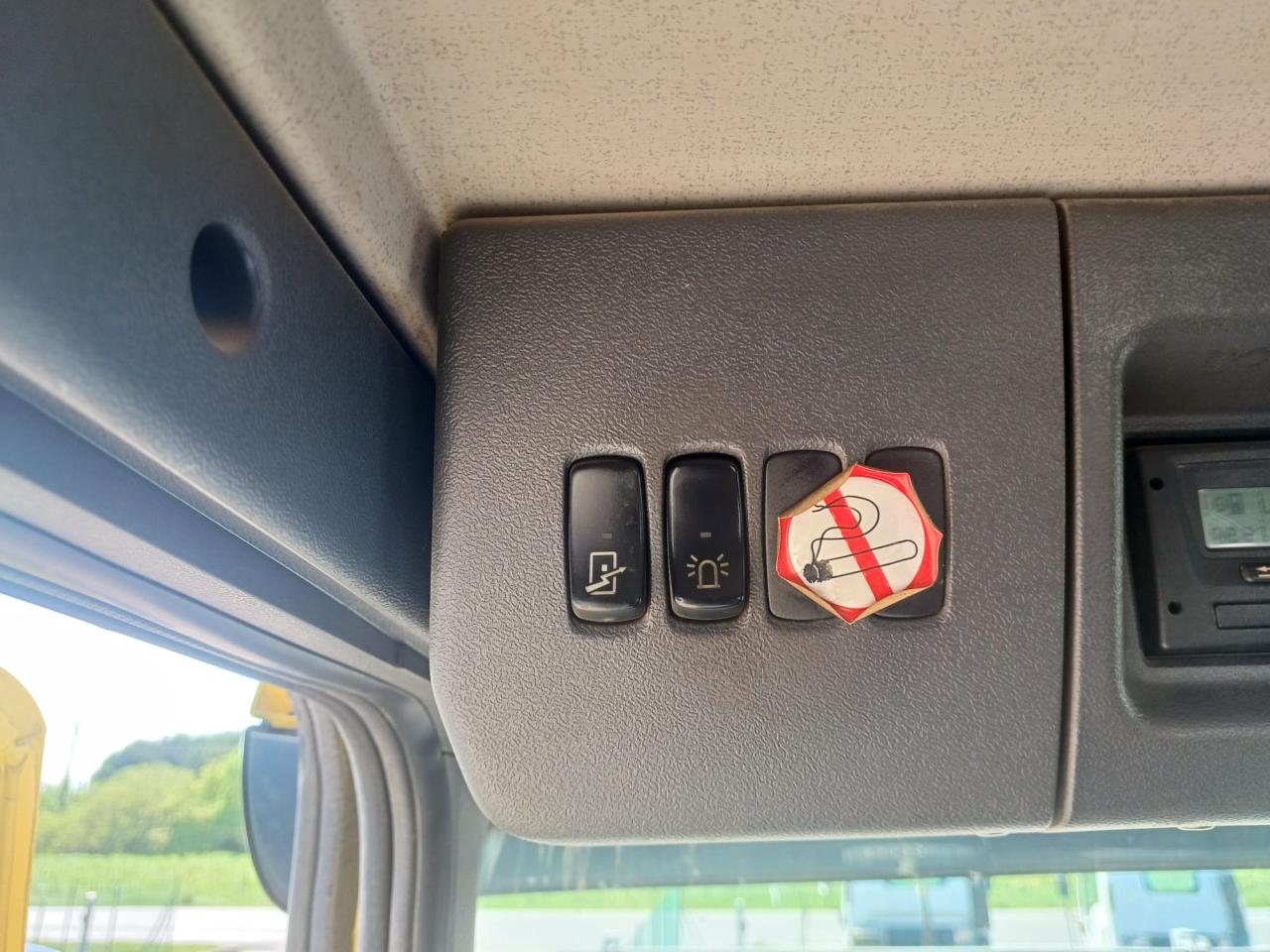INTERNO: 2 posti in cabina, sedile conducente con braccioli, volante multifunzioni completo, cruise control e limitatore di velocità, radio cd, retrocamera, aria compressa in cabina, vetri e specchi elettrici, presa USB, presa 12 V.